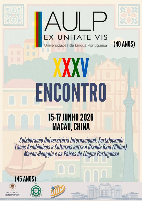 É com particular gosto que convidamos V. as Ex. as a participar no XXXV Encontro da AULP - 2026, que se realiza em Macau. Iremos realizar a 7.ª Reunião dos membros da AULP nesta Região Administrativa Especial da China, que decorrerá, em parte, como evento paralelo ao IV Fórum de Reitores da China, Macau e dos PLPs, pelo que é expetativa que nos possamos todos reencontrar.